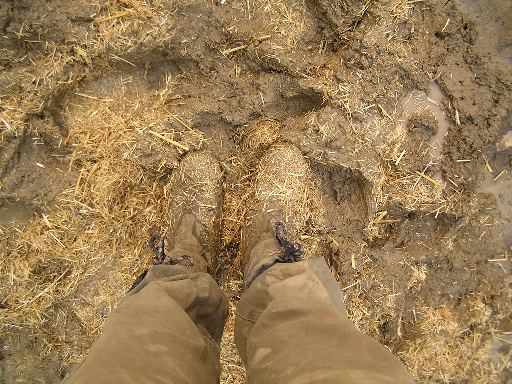 I was able to get started on the third layer in April.  Tracy came for a morning and went over the variation of the cob mix- this time the ratio of clay to sand was 1:2, with one and a half buckets of finely sifted straw.  (I used a certain bucket for measuring, and went through a few mixes of experimenting with ratios before finally getting to the mix that cracked the least.)  The sand we used was a finer, washed sand.  This layer is applied with a trowel, and encompasses the task of sealing in the flaps of burlap that connect the bale walls to the timber frame.  (Since clay doesn’t stick to wood very well and shrinks when it dries, a strip of burlap was stapled to the backs of the places where straw meets wood, and so the clay doesn’t move away from the wood when it dries.)  The burlap has to be rightly stuck down, so we brushed it with more clay slip until it was nicely saturated, then we rubbed it in roughly with plaster before applying a smoothly troweled layer of plaster.
