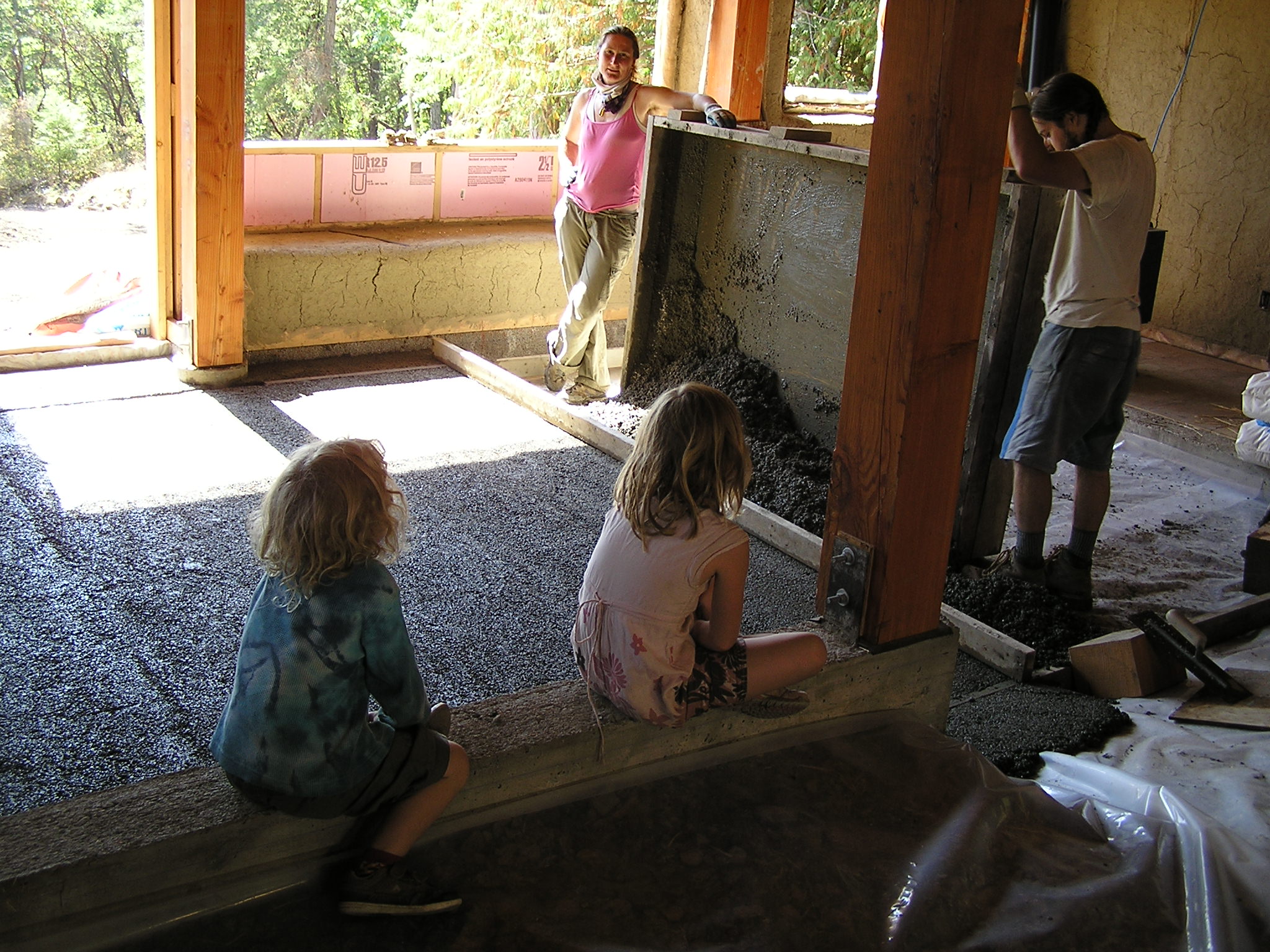 mixing perlit concrete in a trough layering over the vapour barrier