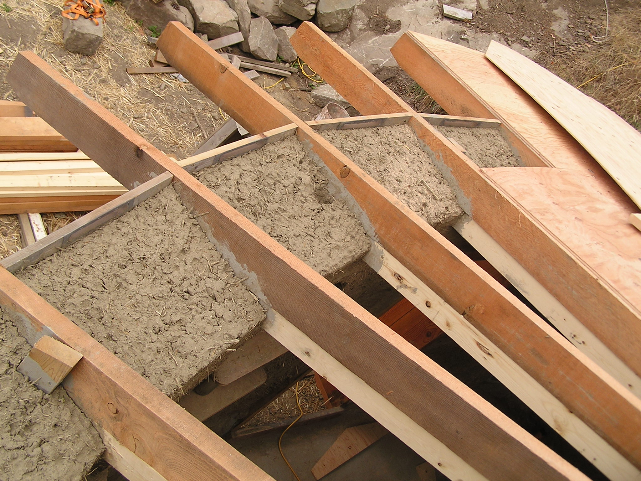 The Roof of the Cob Workshop » rafters and 2 foot overhang