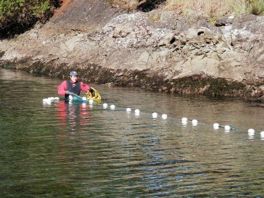 Our beautiful fall weather has offered some amazing days for outdoor explorations, especially at the beach! As a snorkeler, I am always interested in finding out what is going on at different times of the year below the surface of the ocean. Fish, however, are elusive, fast moving, and hard to identify as they scoot among the seaweeds. So I was very happy to witness the workings of a beach seine collecting an array of fish that live in the nursery habitat of eel grass beds in the sheltered bays of the Gulf Islands.