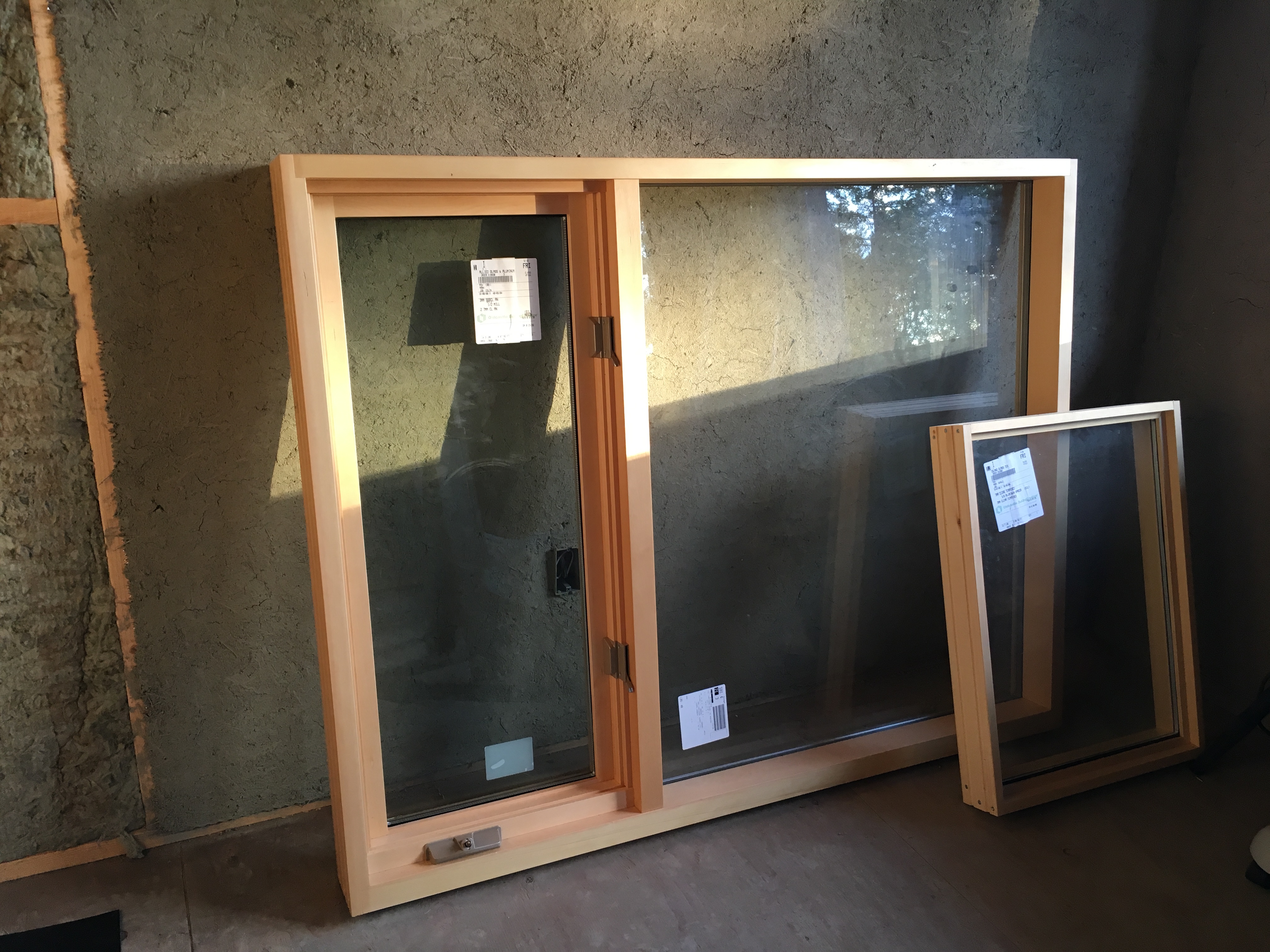 Similar to our first house, we used yellow cedar for the windows from the same wood salvaging supplier on the next island over from us, and fir for the doors. The spaces in which they fit needed to be shimmed, braced, and stuffed with insulation before the trim is set in place, and the windows finally become the imbedded and framed view we imagined from the beginning.