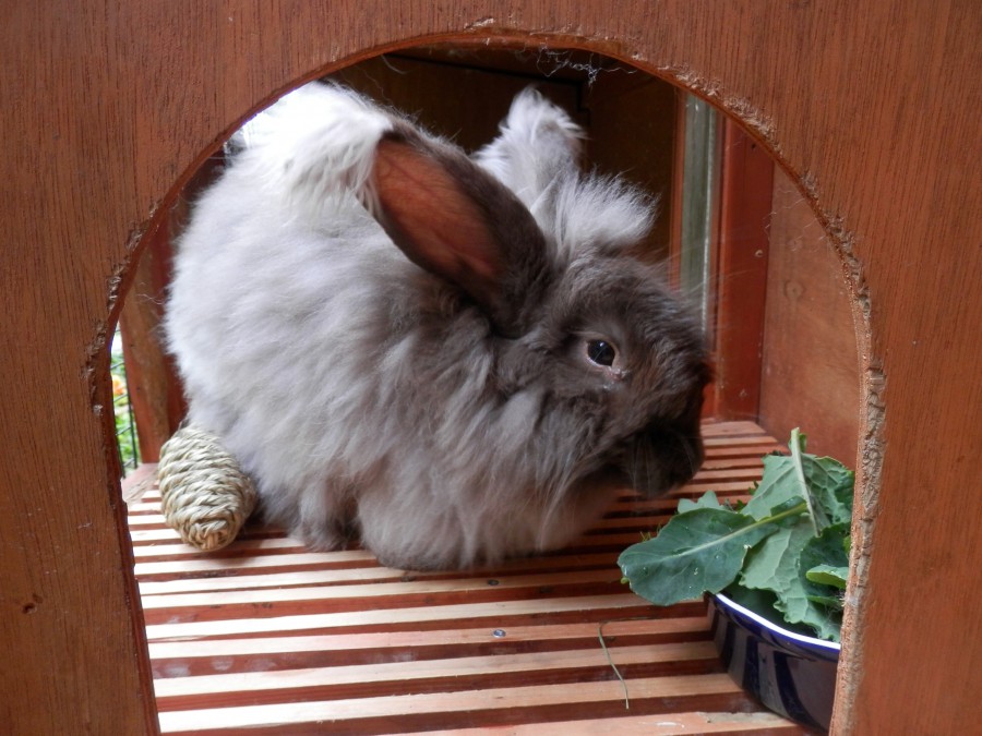 There was a lot of different types of housing offered for rabbits.  We were given a double long wooden hutch, so we started with that for Gustav, the young french angora male.