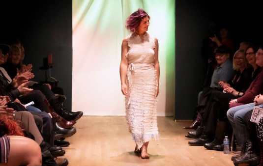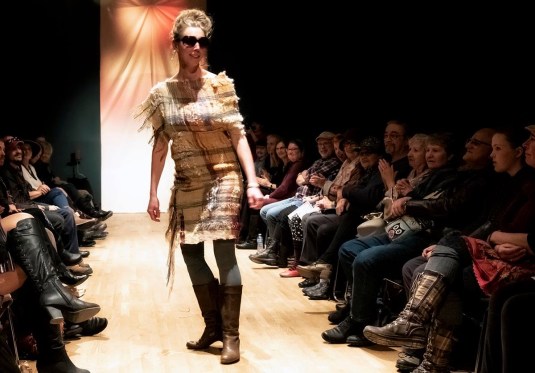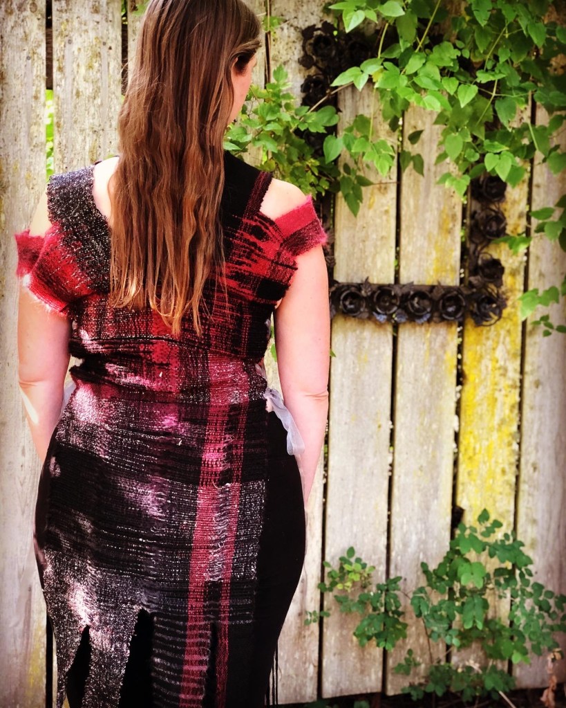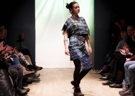 The second year I found myself a model on 6 runways, stripping between them from steam punk to fortune teller, bio-luminescence to golden street attitude. The third year I hesitantly decided to attempt to weave a “few” outfits for a runway collection of my own. I ended up fitting 16 of my friends and family into variously constructed experiments of woven creative impulses and choreographing their display to 12 minutes of music scoured over for the perfect thematic fit.
