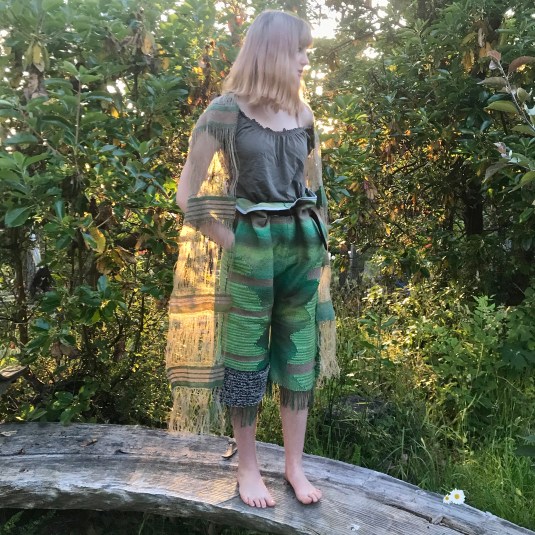 Earth- starting with the simplest of design in earth tones, I felt these pants and shawl had a very hobbit-ish style. “I found it is the small everyday deeds of ordinary folk that keep the darkness at bay, small acts of kindness and love.” – J.R.R. Tolkien, The Hobbit.