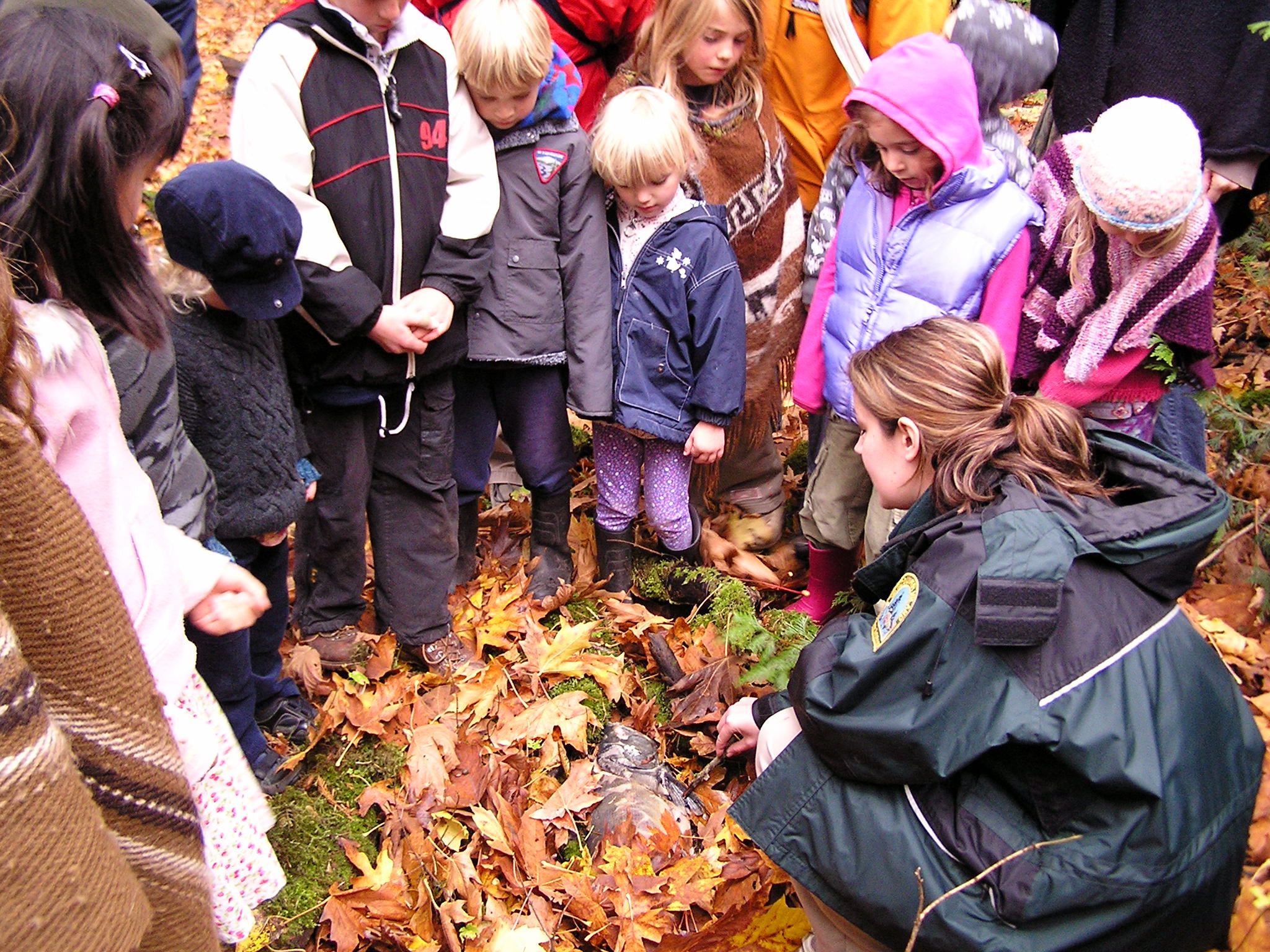 Our Spring Leaves Forest School is a blend of Forest School ethos with the themes in Coyote’s Guide to Connecting with Nature, which is a book about the principles, games and other activities in Coyote Mentoring. Julie’s background in outdoor and experiential education and the combination of these two programs has created a wonderful foundation in which our group can explore the needs of our large span of ages (preschool to 13, plus adults!).