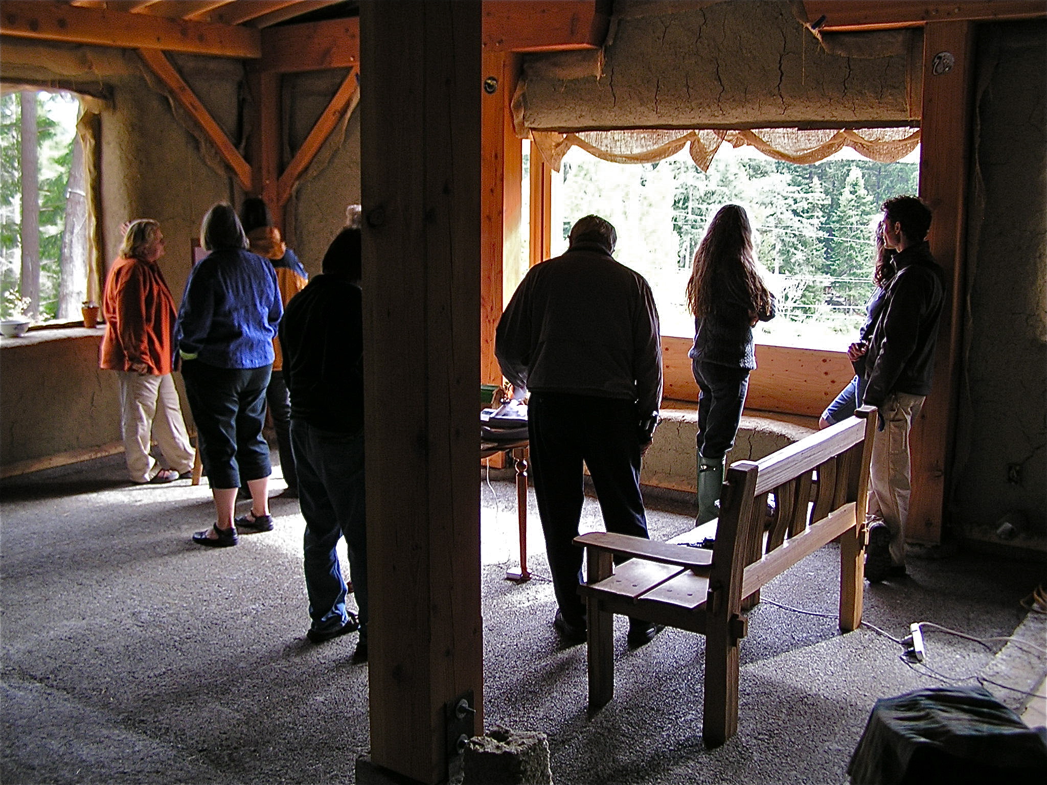 On Pender Island, a group of people wanting to promote various aspects of natural building have formed the Eco-Homes Network, in hopes of being able to provide services and information for anyone seeking to build a healthy home, as well as networking with other builders in the community to create a greater awareness of alternative materials and systems. Education for clients as well as builders is a large step towards integrating healthier building practices into any house or project, whether it is classified as “eco-friendly” or not. Why limit ourselves with labels and categories? Any system that takes pressure off the resources of the earth and saves money in the long term is just a good idea to consider. The Eco-Homes Network consists of Rob Zuk – a solar systems consultant, Ken Rempel – an architectural designer, Garrett McLeod – a traditional timber framer and carpenter, Colin Hamilton – artistic woodworker and natural builder, Tracy Calvert – an extensive natural builder and master of earthen plastering, and Jude Farmer – a woodworker and man of many skills. In fact, everyone in the group has many crossover skills and knowledge spanning many years of different experiences within the building industry, including roofing, tiling, stonework, workshop leadership, landscaping, flooring, and planning.