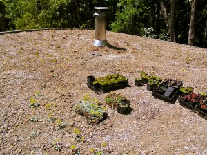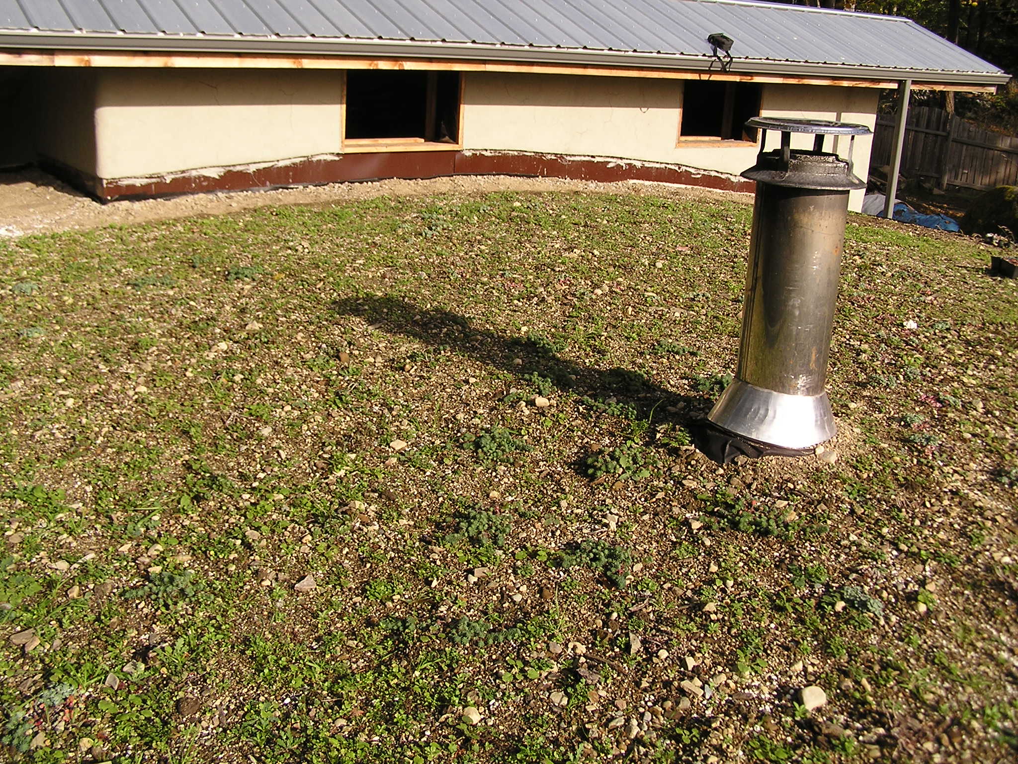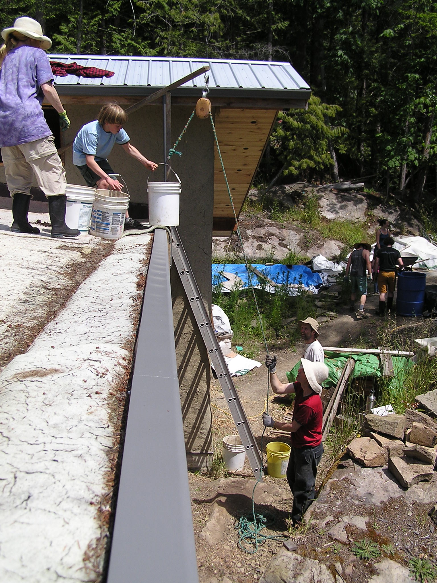 We also have some circular thick glass port windows, about 8 inches across, that we wanted to have in the walls, so we put buckets that were slightly smaller than the glass in the place where we wanted the windows and them cobbed all around them. By turning the buckets each day we ensured that they will pull out easily when we want to set the glass in.